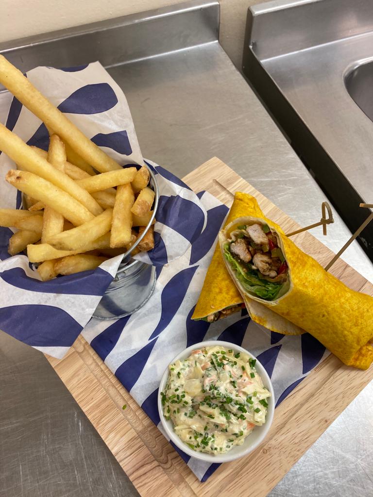 The restaurant serves a classic British favorite, Fish and Chips, that’s well-loved by its patrons. Whether you're coming to fill up after a busy day or just want to unwind, this dish is sure to hit the spot. Paired with a cold beer or a refreshing glass of wine, it's a simple yet satisfying meal. If you're looking for a place to enjoy some classic pub food with an added twist, Blues Bar delivers on both comfort and taste.